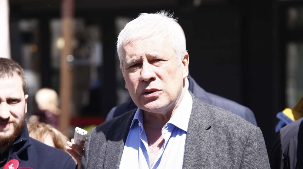 Beograd, 13.04.2022. - Konferencija za novinare koalicije "Ajmo ljudi" povodom ponavljanja glasanja na nekoliko birackih mesta u Beogradu odrzana je danas ispred Gradske uprave u Beogradu. Na konferenciji su govorili predsednik Socijaldemokratske stranke (SDS) Boris Tadic (govori), nosilac liste "Ajmo ljudi" za beogradske izbore Dusko Vujosevic i clan koalicije "Ajmo ljudi" Aris Movsesijan. (BETAPHOTO/AMIR HAMZAGIC)Socijaldemokratska stranka (SDS) reagovala je na pominjanje njenog lidera i bišveg predsednika Srbije u dva mandata Borisa Tadića, u jutarnjem programu Televizije Pink i zatražila reakciju javnosti i institucija, navodeći da će i sami preduzeti potrebne korake.