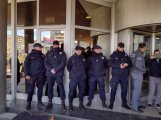 Odbornici ulaze u Skupštinu, građani su napolju, guraju se sa obezbeđenjem. Po statutu sednice Skupštine grada su otvorene za javnost.