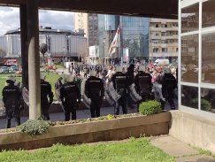 U međuvremenu stigla je i policija sa štitovima, građani im aplaudiraju.