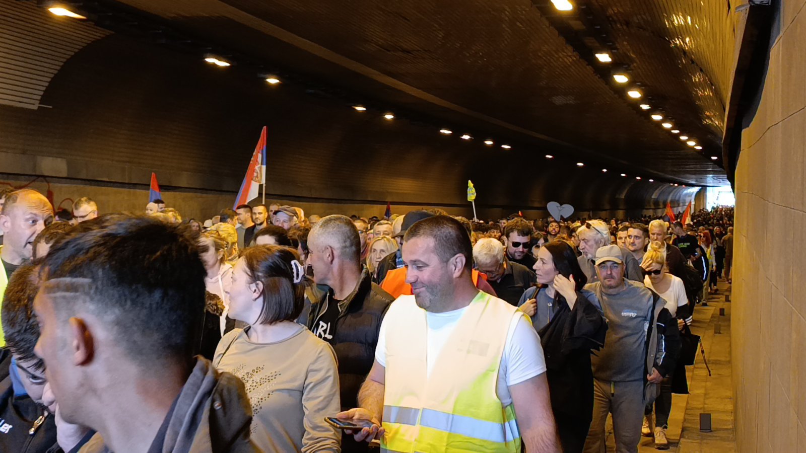 Reporter Danasa pokušao je da razgovara sa nekim od građana koji su deo ove dugačke kolona, koja kroz Terazijski tunel prolazi već preko deset minuta, ali nisu bili voljni za razgovor.