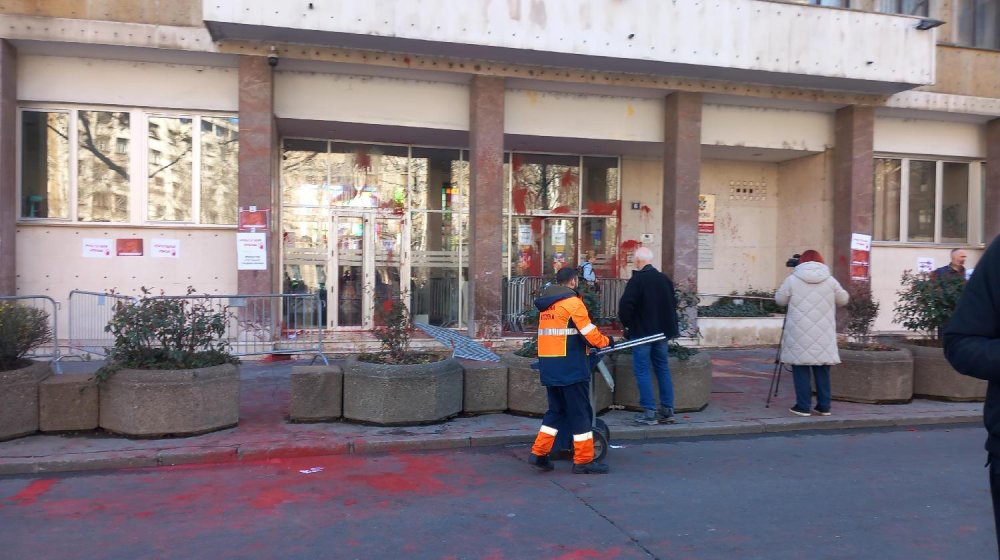 Foto FoNet Anđelija StojkovićDeo Trga Nikole Pašića, posle niza incidenata ispred Skupštine grada Beograda, zatvoren je i dalje za saobraćaj, a dva vozila hitne pomoći parkirana su ispred ulaza u zgradu gradskog parlamenta.