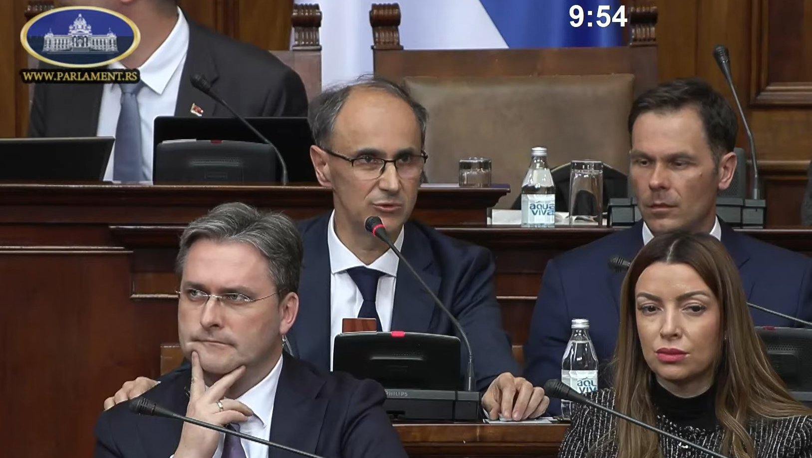 13:39 Albijanićev govor izazvao je i dobacivanje poslanika vlasti, a šef poslaničke grupe SNS-a Milenko Jovanov čak je ustao sa svog mesta kako bi naterao takođe vladajućeg poslanika Marijana Rističevića da se pomeri od Albijanića.