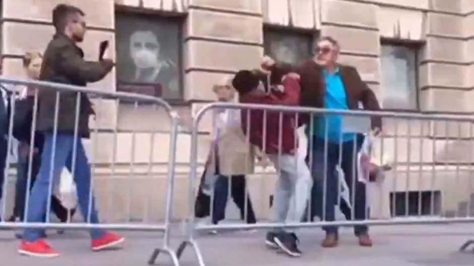 Snimak incidenta Foto: Twitter Narodna strankaPrilikom okončanja blokade radova danas na Trgu republike došlo je do incidenta u blizini Narodnog pozorišta, kada je za sada nepoznati stariji prolaznik udario pesnicom u glavu Marka Dragoslavića, člana Narodne stranke, koga tviteraši znaju pod nadimkom „Operativac iz Zemuna“.