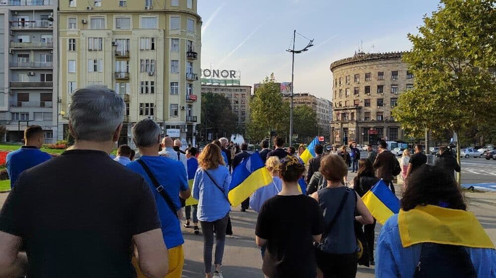 Prethodno je mirnom šetnjom od Pionirskog parka do Trga republike i formiranjem živog lanca pod nazivom „Slobodni svet“ u Beogradu je obeležen Dan nezavisnosti Ukrajine.