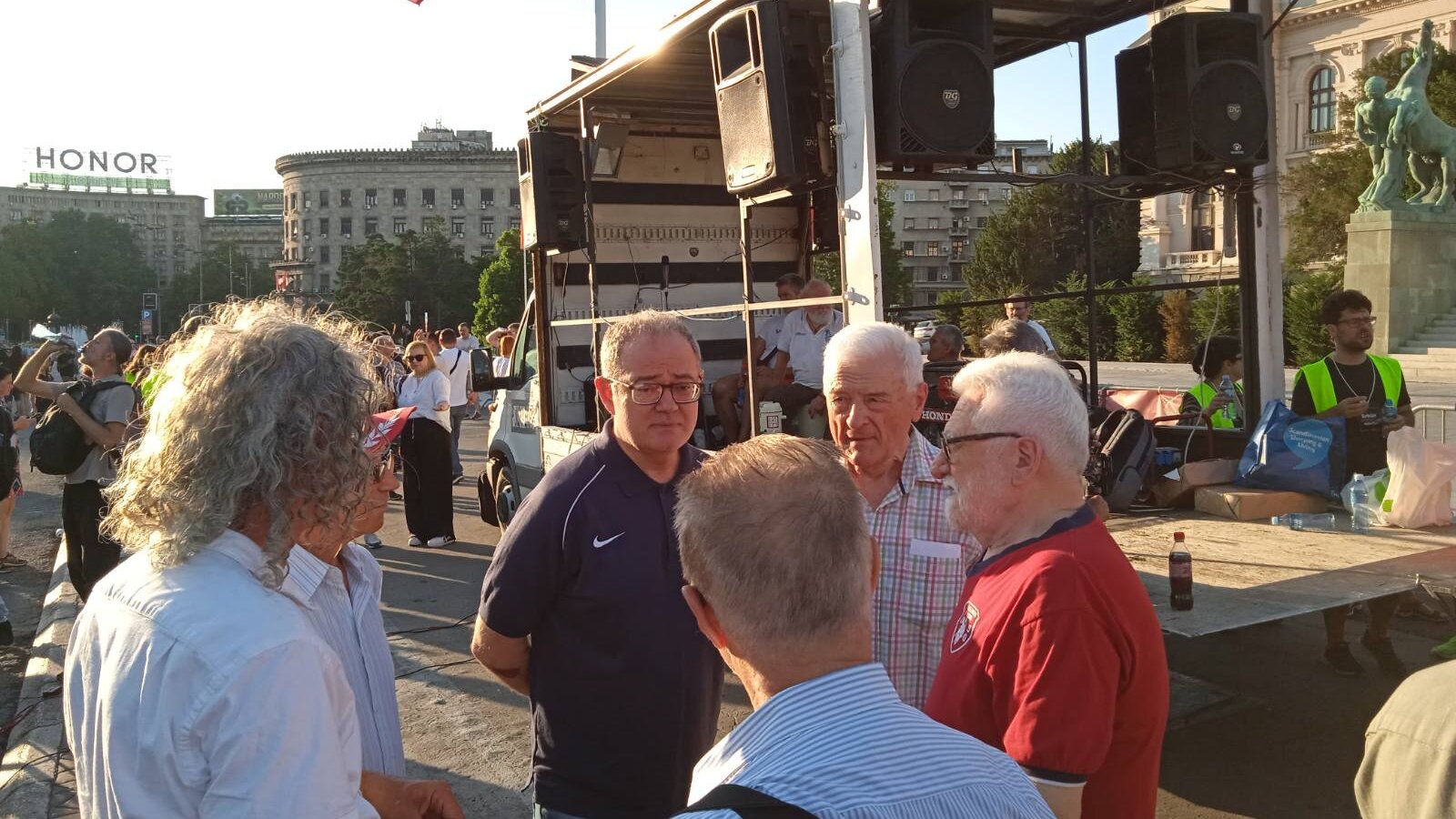 19.00 Stigao je Zoran Lutovac, predsednik Demokratska stranke. Sa njim je i Zoran Ivošević, sudija u penziji, koji je najavljen kao govornik.