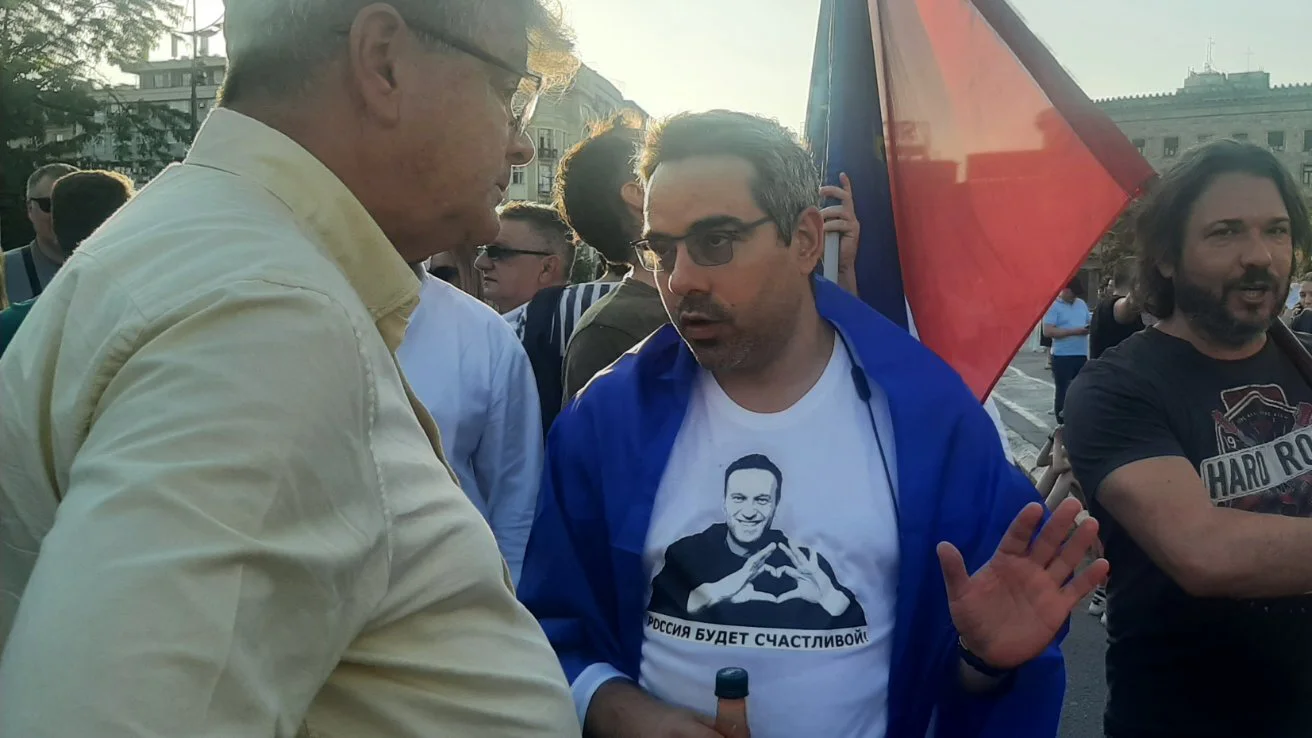 19.22 Na protestu u Beogradu je i aktivista Peter Nikitin, koji je prethodnih dana bio u centru pažnje javnosti, zato što je zadržan dva dana na aerodromu „Nikola Tesla“.