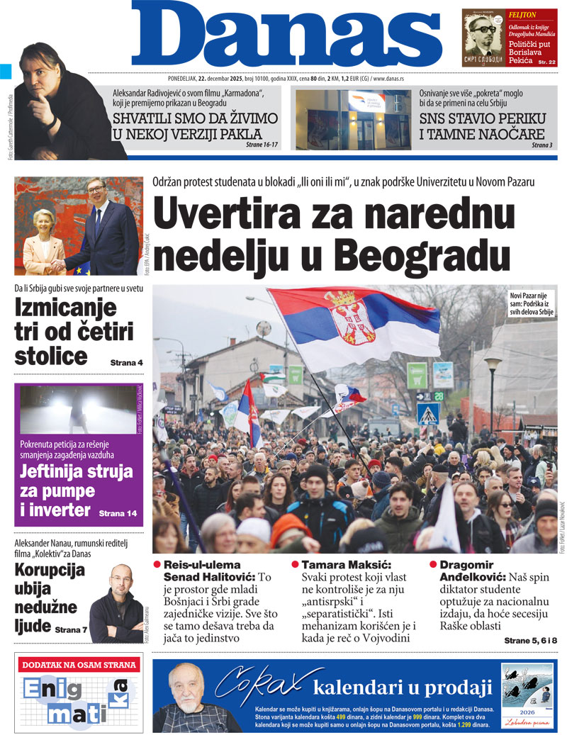 Pratite nas na našoj Facebook i Instagram stranici, ali i na X nalogu. Pretplatite se na PDF izdanje lista Danas.