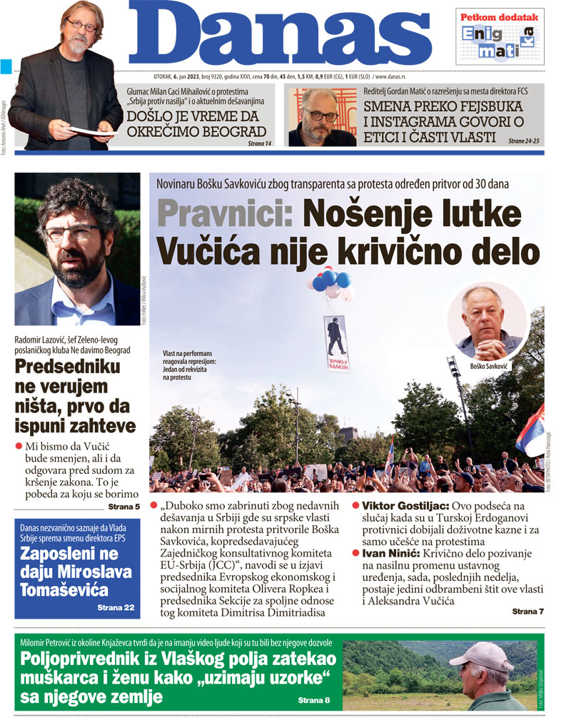 Pratite nas na našoj Facebook i Instagram stranici, ali i na X nalogu. Pretplatite se na PDF izdanje lista Danas.