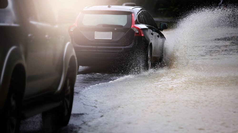 Pripazite na druga vozila, naročito kamione, jer vas oni prolazeći kroz lokve vode mogu poprskati i trenutno smanjiti vidljivost, ali pripazite da i vi ne zalivate druge učesnike u saobraćaju.