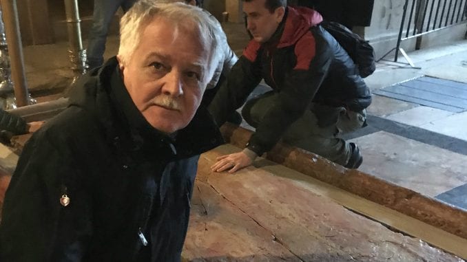 Pa ni sama Golgota: držao sam da je ta uzvišica na kojoj se dogodilo raspeće znatna, i da sa njene panorame pogled prodire u beskrajni, vasceli svet. Realnost mi menja tu perspektivu. Čitav taj prostor pod svodom je Crkve Hristovog groba (Holy Sepulchre stoji na tabli, malo do nje je da je to već ulica Svete Jelene), i ceo nekako sveden kao na vršak čiode. Tako magistralni događaji, neverovatnih dimenzija za povest čovečanstva, sad su tu na razmacima od po desetak koraka stajali nenapadno, sa svojim skromnim zapreminama. Pokušaću da budem što jednostavniji: desno od ulaza su stepenice koje vode do Golgote, po sredini hola je kamena ploča na koju je položen iscrpljeni Isus (mrtvi Isus?), a onda desetinu metara odatle Hristov je grob.