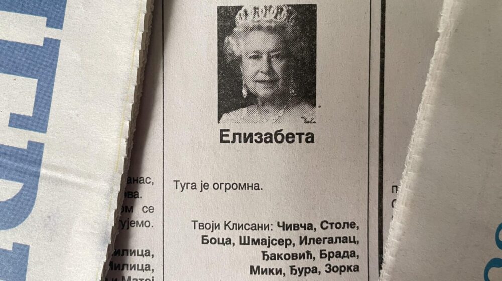 „Tuga je ogromna“, osvanuo je natpis ispod slike pokojne vladarke u čitulji koja je objavljena u vikend izdanju čuvenog novosadskog lista Dnevnik.