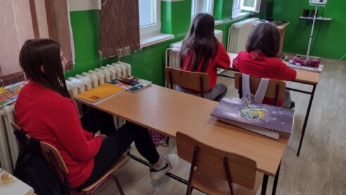 Učenici svi radosni i spremno poziraju u crveno-plavim bojama dok ih fotkamo u đačkim klupama tokom nastave. Isti entuzijazam, elan i oduševljenje bez obzira na uzrast bilo da slikamo u četvrtom šestom ili osmom razredu.