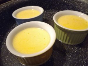 Zatim činijice složimo u pleh za pečenje u rerni, i dodamo toplu vodu, do polovine činijica. Pečemo na 140C, 35 minuta.