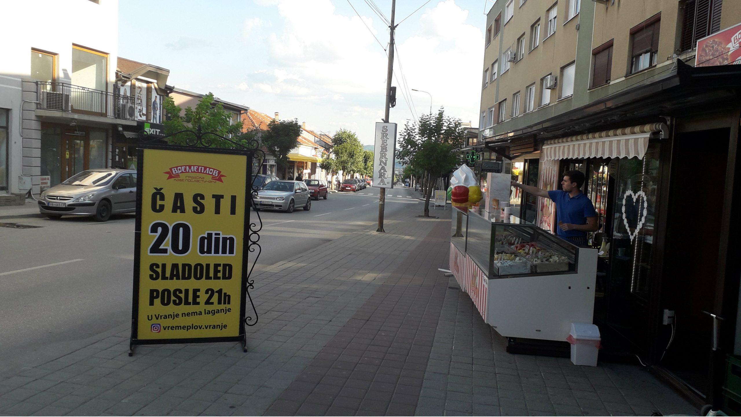 Tokom dana, kugla sladoleda prodaje se po ceni od, za ovdašnje prilike enormnih, 50 dinara, dok je cena posle 21 sata gotovo za šezdeset procenata manja i iznosi ipak realnih 20 dinara.