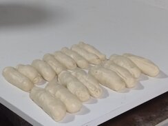 Za pogačice testo gotovo, pod modlicu i „fajnal tač” na tabli sa rakijskom čašicom. Perek i đevrek dobijaju prskanje presolcem, hlade se desetak ak minuta pa premaz uljem. Na 202 recept za komplet lepinju – hvala jedva i ovo postižemo. Gleda se u peć, proverava temperatura, šteluje, šumadijske kifle završavaju u njihovoj utorbi, tura za turom peciva, stiže i projanica, taman pre šest za otvarnje.