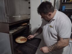 Mali Neša špaklom čisti brašno sa table – sprema se za krofne. U peć idu pogačice, a pecivo iz njih tek „sveže ubrano” vruće ređa se i niže u prodajnom delu. Na repertoaru BG sindikat i „nema povlačenja, nema predaje”. I stvarno nema – gotove pogačice sa čvarcima na red dolaze puter kifle.