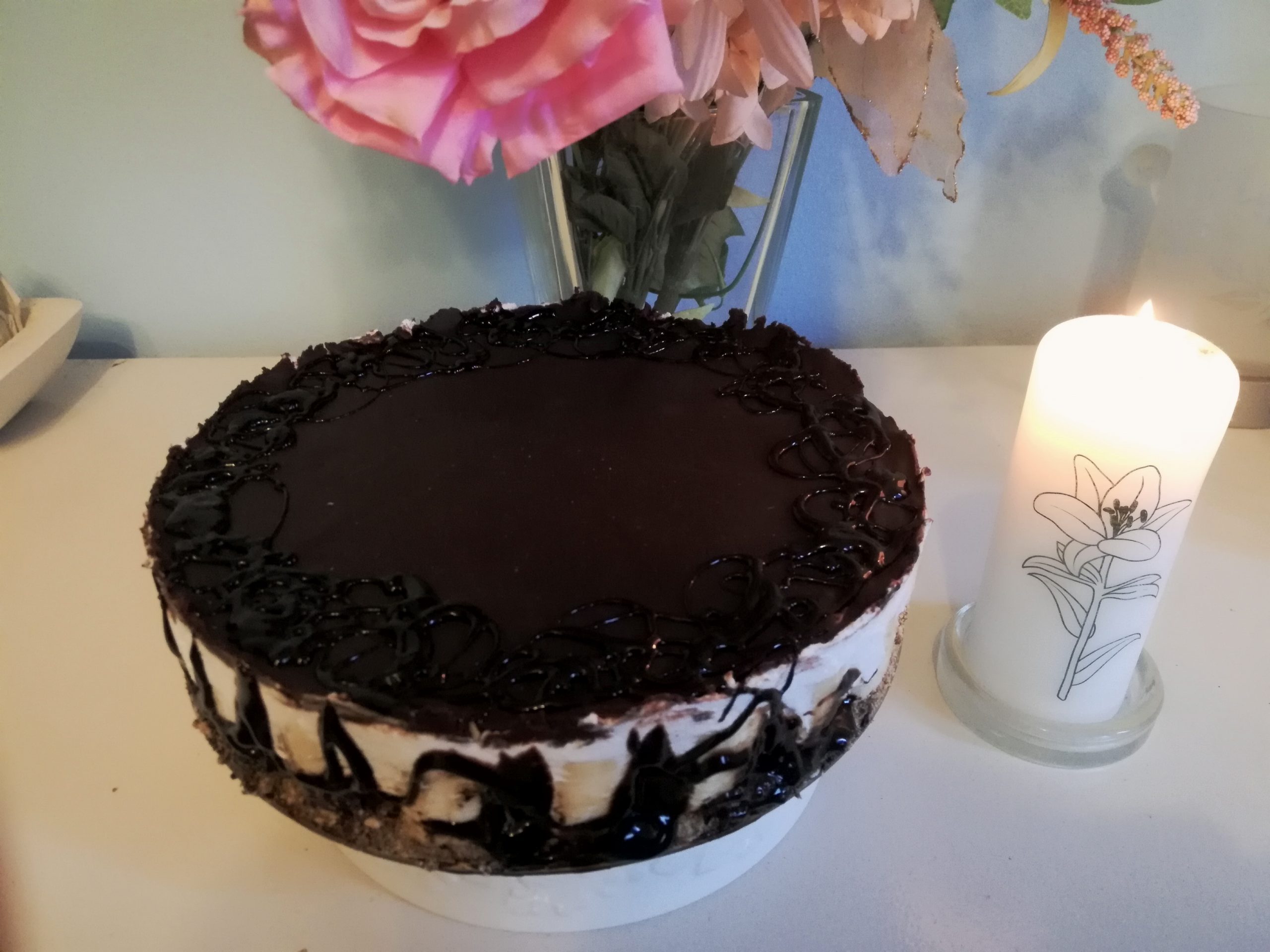 Preko torte preliti glazuru od zagrejane smese za šlag (kašika šlaga i 80ml vode) u kojoj treba rastopiti 200 gr crne čokolade.