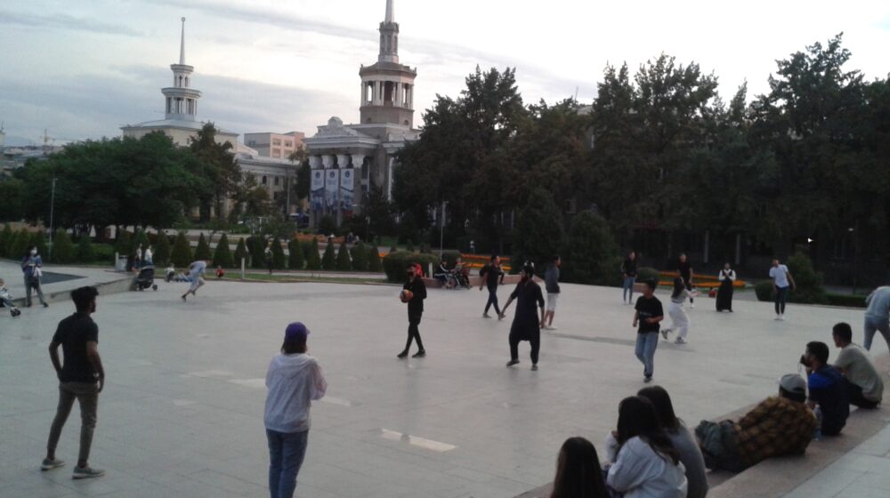 Momci nose uglavnom majice i kratke pantalone. Atmosfera je mirna, prijateljska i nekako seoska: kao da nismo u centru glavnog grada Kirgistana, nego na nekom selu gde se svi znaju i druže.