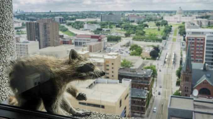 The #mprraccoon is doing a little grooming now that he’s a social media star. You know, on a 23rd floor window ledge. @MPRnews pic.twitter.com/pGcwh7OJ6L