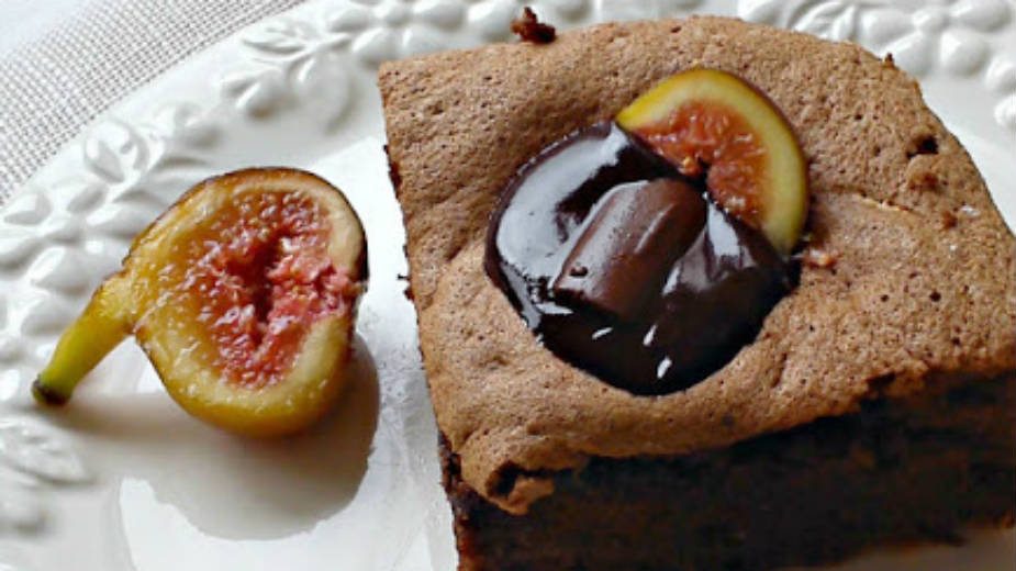 S obzirom da je u pitanju mekši biskvit i da će smokve pasti na dno, čokoladnu glazuru možete sipati u udubljenja kao na slici.