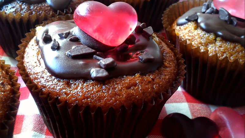 Dekorišite ih po želji. Ja sam ih dekorisala komadićima čokolade i gumenim bombonama u obliku srca.