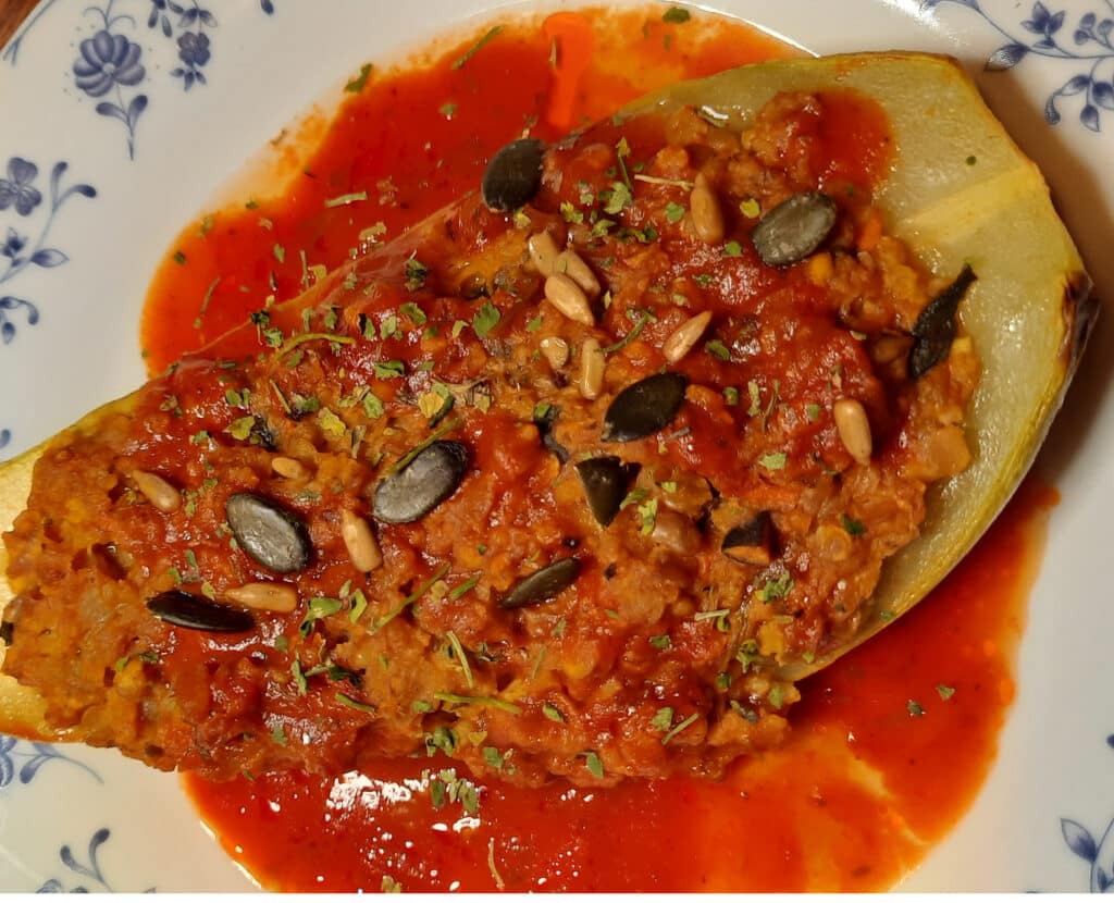 Današnji recept je malo drugačija smesa za punjene tikvice, koja se savršeno uklapa i za punjene paprike. Ovaj obrok sadrži sve potrebne nutrijente, zdrave masti kroz semenke, proteine kroz sočivo, vitamine i ugljene hidrate kroz proso.