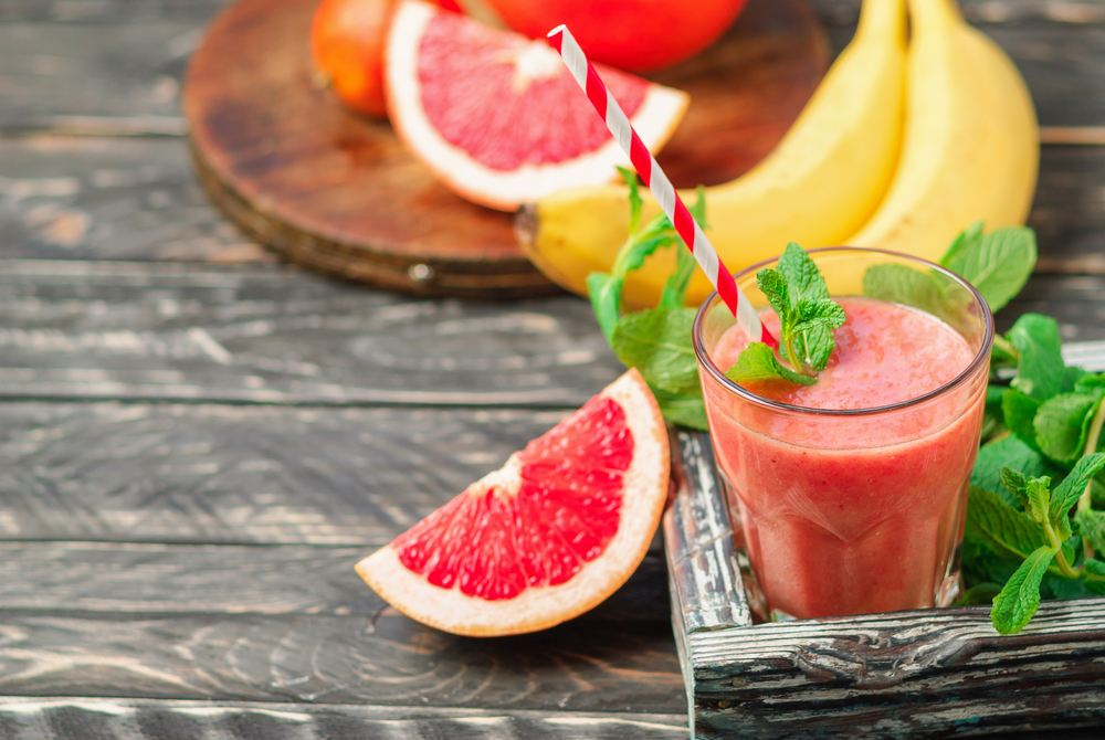 Grejpfrut sadrži slične sastojke, a može se pohvaliti i vitaminom A (u crvenom ga ima više nego u žutom grejpfrutu), holinom, magnezijumom i mnogim drugim zdravim materijama. On će smutiju dati posebno bogat ukus, a ako volite slađe napitke, onda ga pripremite sa crvenim grejpfrutom. Sa druge strane, ako ste skloniji gorkim ukusima, izaberite žuti grejpfrut.