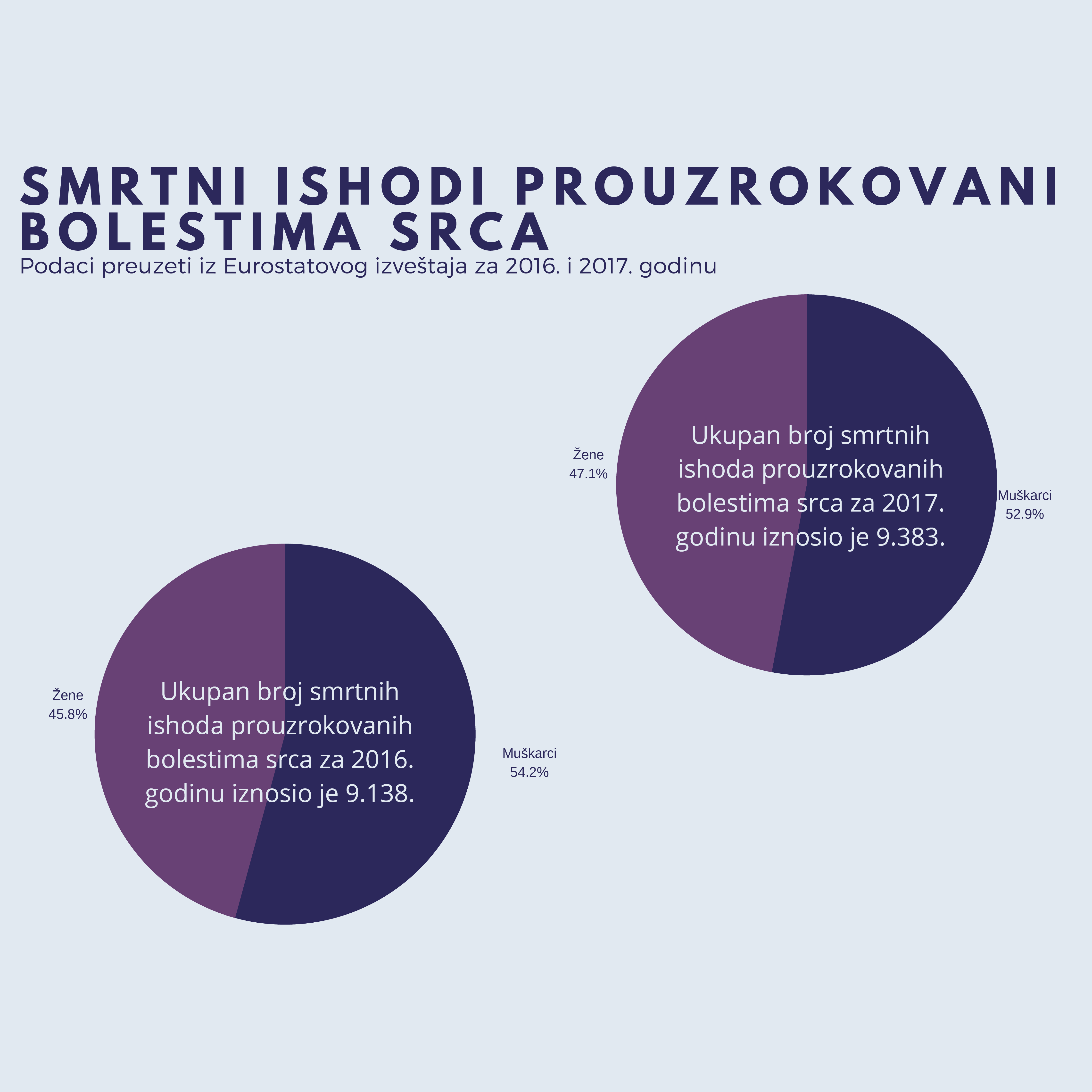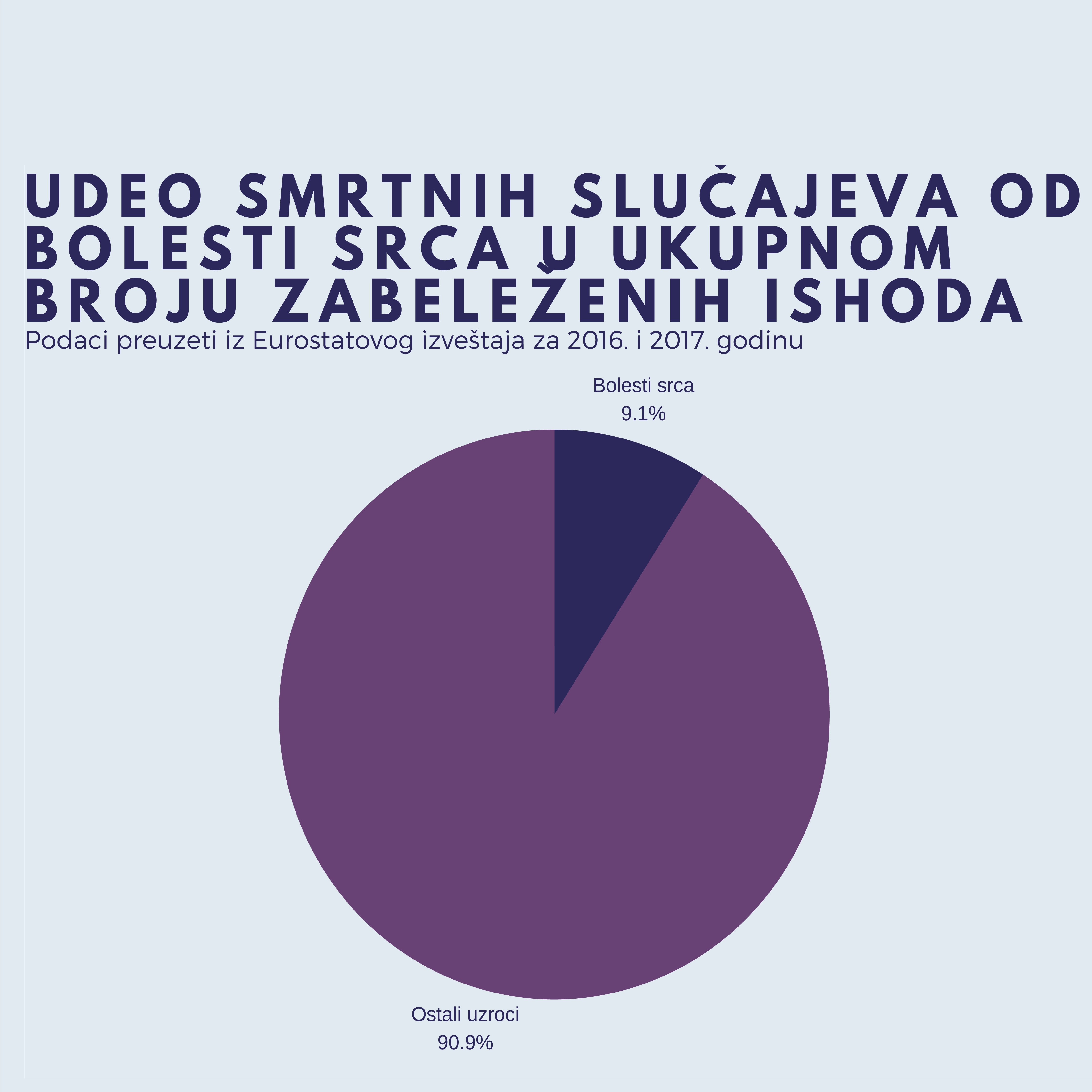 Kada je u pitanju Srbija, ukupan broj smrtnih slučajeva za 2016. godinu iznosio je 100.662 smrtna ishoda, od čega su bolesti srca prouzrokovale 9.138. U toku naredne godine taj broj se povećao. Od ukupno 103.507 slučajeva u toku 2017. godine, bolesti srca bile su glavni uzrok 9.383 smrtna ishoda.