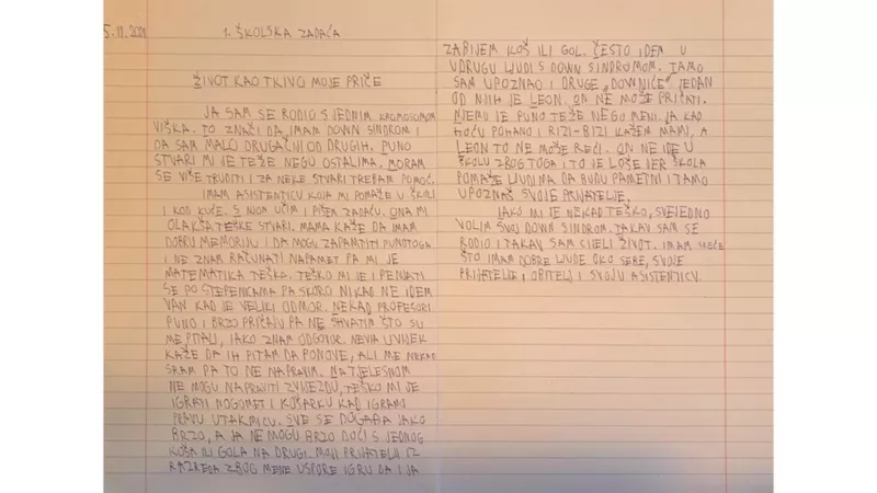 Njegov sastav na temu „Život kao tkivo moje priče“ pružio je uvid u odrastanje drugačije nego kod ostalih učenika iz odeljenja.